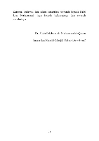 Semoga shalawat dan salam senantiasa tercurah kepada Nabi kita Muhammad, juga kepada keluarganya dan seluruh sahabatnya. Dr. Abdul Muhsin bin Muhammad al-Qasim Imam dan Khathib Masjid Nabawi Asy-Syarif 13