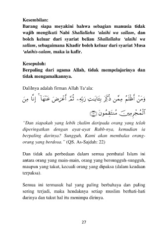 sallam, sebagaimana Khadir boleh keluar dari syariat Musa