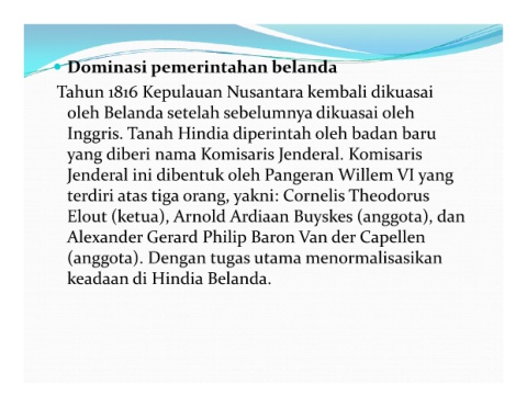 Tahun 1816 Kepulauan Nusantara kembali dikuasai