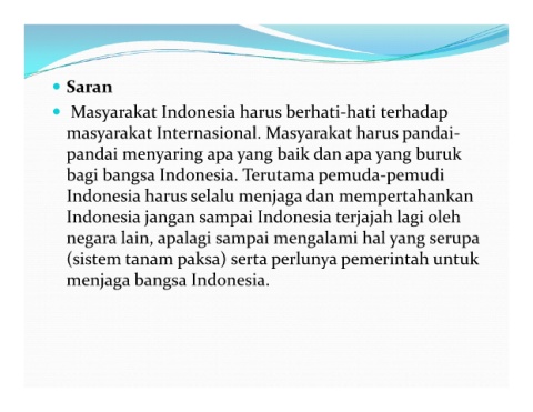 (sistem tanam paksa) serta perlunya pemerintah untuk