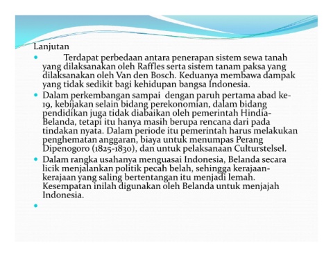 yang dilaksanakan oleh Raffles serta sistem tanam paksa yang