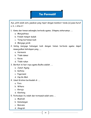 1. Kamu dan teman sebangku berbeda agama. Sikapmu seharusnya …..