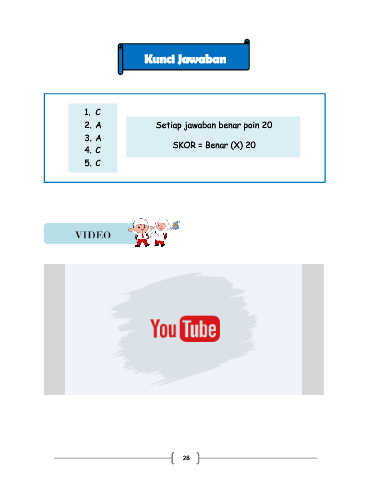 Kunci Jawaban 1. C 2. A Setiap jawaban benar poin 20 3. A SKOR = Benar (X) 20 4. C 5. C VIDEO 28