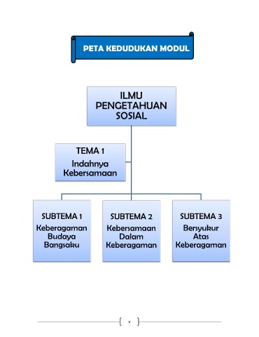 PETA KEDUDUKAN MODUL ILMU PENGETAHUAN SOSIAL TEMA 1 Indahnya Kebersamaan SUBTEMA 1 SUBTEMA 2 SUBTEMA 3 Keberagaman Kebersamaan Bersyukur Budaya Dalam Atas Bangsaku Keberagaman Keberagaman v