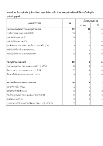 ตำรำงท 13 จำนวนบณฑต รนปกำรศกษำ 2560 ททำงำนแลว จำแนกตำมวฒกำรศกษำทใชทำงำนในปจจบน
