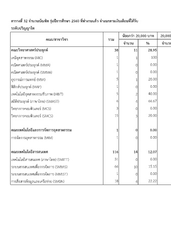 ตำรำงท 32 จำนวนบณฑต รนปกำรศกษำ 2560 ททำงำนแลว จำแนกตำมเงนเดอนทไดรบ