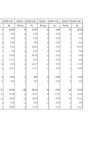 นอยกวำ 20,000 บำท 20,000 - 25,000 บำท 25,001 - 30,000 บำท 30,001 - 35,000 บำท มำกกวำ 35,000 บำท