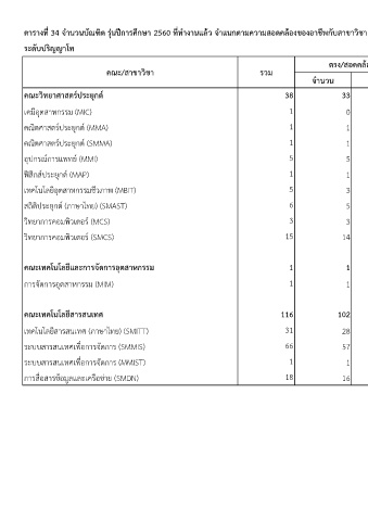 ตำรำงท 34 จำนวนบณฑต รนปกำรศกษำ 2560 ททำงำนแลว จำแนกตำมควำมสอดคลองของอำชพกบสำขำวชำ