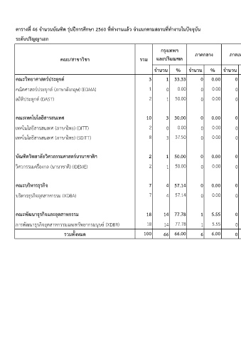 ตำรำงท 46 จำนวนบณฑต รนปกำรศกษำ 2560 ททำงำนแลว จำแนกตำมสถำนททำงำนในปจจบน