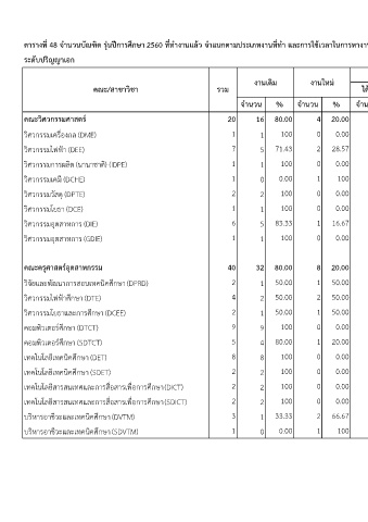 ตารางท 48 จานวนบณฑต รนปการศกษา 2560 ททางานแลว จาแนกตามประเภทงานททา และการใชเวลาในการหางานทา