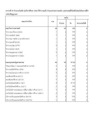 ตำรำงท 49 จำนวนบณฑต รนปกำรศกษำ 2560 ททำงำนแลว จำแนกตำมควำมพอใจ และสำเหตทบณฑตไมพอใจในงำนททำ