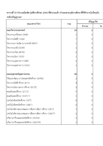 ตำรำงท 53 จำนวนบณฑต รนปกำรศกษำ 2560 ททำงำนแลว จำแนกตำมวฒกำรศกษำทใชทำงำนในปจจบน
