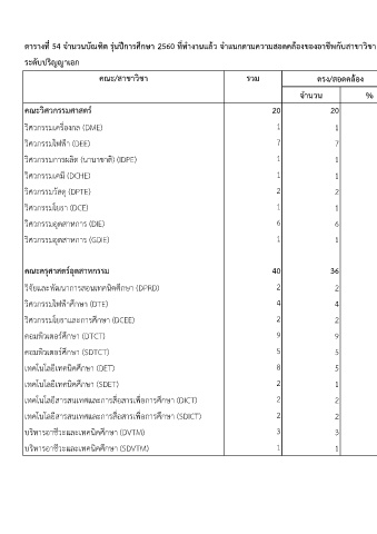 ตารางท 54 จานวนบณฑต รนปการศกษา 2560 ททางานแลว จาแนกตามความสอดคลองของอาชพกบสาขาวชา