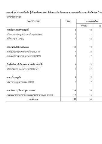 ตารางท 54 จานวนบณฑต รนปการศกษา 2560 ททางานแลว จาแนกตามความสอดคลองของอาชพกบสาขาวชา