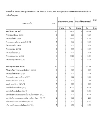 ตำรำงท 58 จำนวนบณฑต รนปกำรศกษำ 2560 ททำงำนแลว จำแนกตำมควำมรควำมสำมำรถพเศษทมสวนชวยใหไดทำงำน