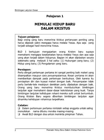 BLD 1 bertujuan mengajarkan orang Kristen baru supaya