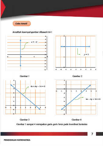Gambar 1 sampai 4 merupakan garis-garis lurus pada koordinat kartesius