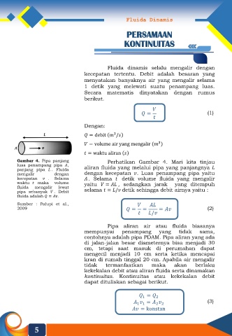 luas penampang pipa , aliran fluida yang melalui pipa yang panjangnya