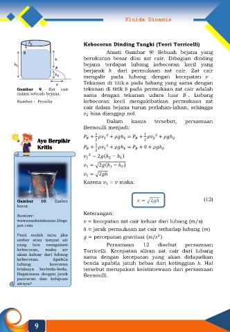 kebocoran, maka air Torricelli. Kecepatan aliran zat cair dari lubang