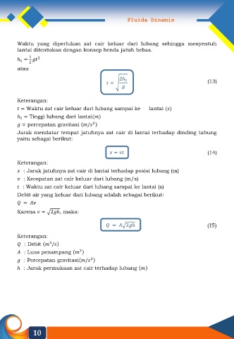 Waktu yang diperlukan zat cair keluar dari lubang sehingga menyentuh