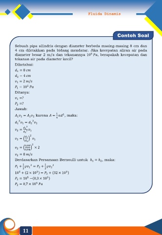 diameter besar 2 m/s dan tekanannya 10 , berapakah kecepatan dan