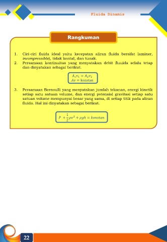1. Ciri-ciri fluida ideal yaitu kecepatan aliran fluida bersifat laminer,