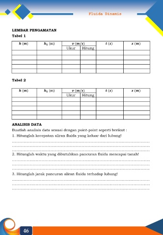 3. Hitunglah jarak pancuran aliran fluida terhadap lubang!
