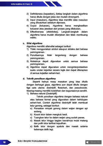 2) Definiteness (kepastian), Setiap langkah dalam algoritma