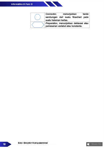 Connector, menunjukkan tanda sambungan dari suatu flowchart pada suatu halaman kertas. Preparation, menunjukkan deklarasi atau pemesanan variabel atau konstanta. 12 12