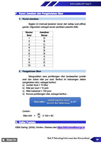 F. Kunci Jawaban dan Pengelolahan Skor