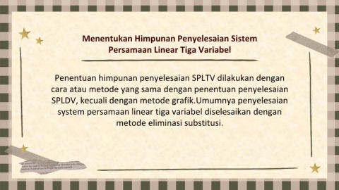 Penentuan himpunan penyelesaian SPLTV dilakukan dengan