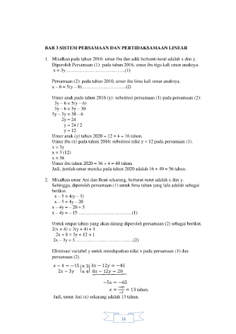 Umur anak pada tahun 2016 (y): substitusi persamaan (1) pada persamaan (2):