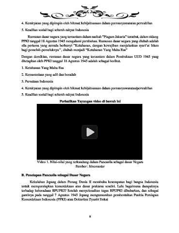 Video 1. Nilai-nilai yang terkandung dalam Pancasila sebagai dasar Negara