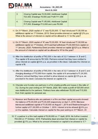 `50,000 on 1 October, 2019. Partnership deed provided that interest on capital be 8