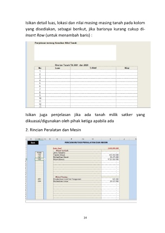 Isikan detail luas, lokasi dan nilai masing-masing tanah pada kolom