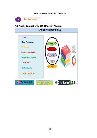 BAB IV MENU LAP KEUANGAN 4.1 Analis Singkat LRA, LO, LPE, dan Neraca 22