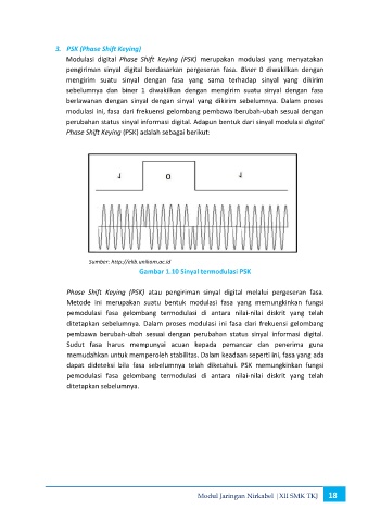 Phase Shift Keying (PSK) atau pengiriman sinyal digital melalui pergeseran fasa.