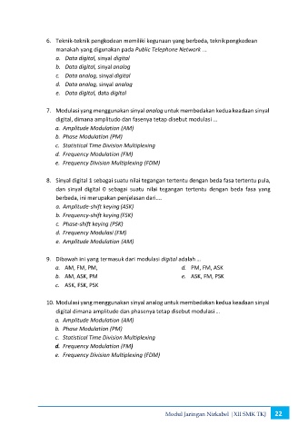 10. Modulasi yang menggunakan sinyal analog untuk membedakan kedua keadaan sinyal