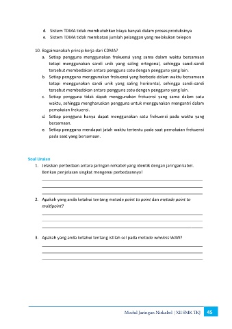 e. Sistem TDMA tidak membatasi jumlah pelanggan yang melakukan telepon