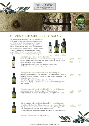 bresaola, rejer og andre skaldyr, laks eller anden fisk og som dressing på salat. 100ml 12
