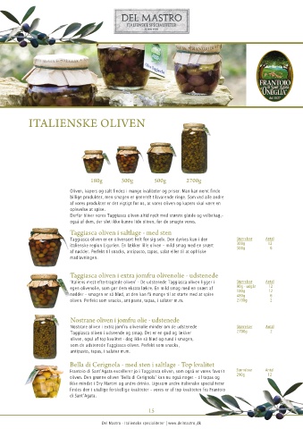 ‘Italiens mest eftertragtede oliven’ - De udstenede Taggiasca oliven ligger i Størrelser Antal