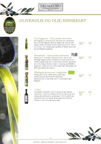 ‘Buonfrutto’ er fremstillet af italienske oliven, hvor en stor Størrelser Antal
