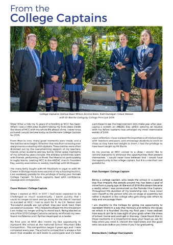in rugby teams. Leading MCC in the ANZAC march, Founders the opportunity to be college captain, but it is a role that I am