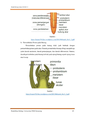 pertumbuhan primer pada akar. Daerah pertumbuhan batang dibagi menjadi tiga