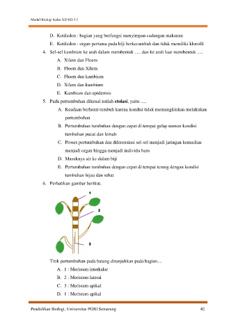 5.  Pada pertumbuhan dikenal istilah etolasi, yaitu .....