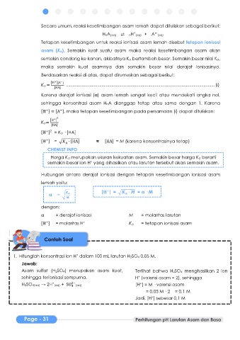 1. Hitunglah konsentrasi ion H dalam 100 mL larutan H2SO4 0,05 M.
