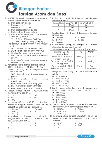 1. Ba(OH)2 termasuk senyawa basa menurut 7. Berikut data hasil titrasi larutan HCl dengan