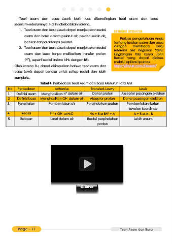 Tabel 4. Perbedaan Teori Asam dan Basa Menurut Para Ahli