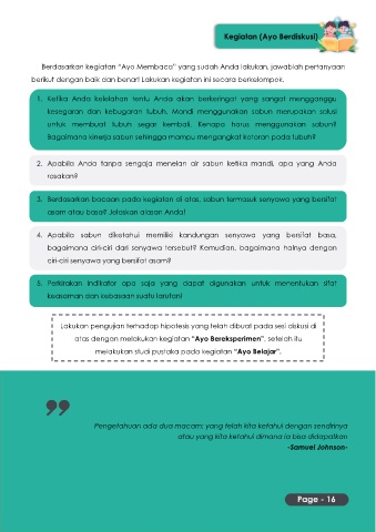 3. Berdasarkan bacaan pada kegiatan di atas, sabun termasuk senyawa yang bersifat