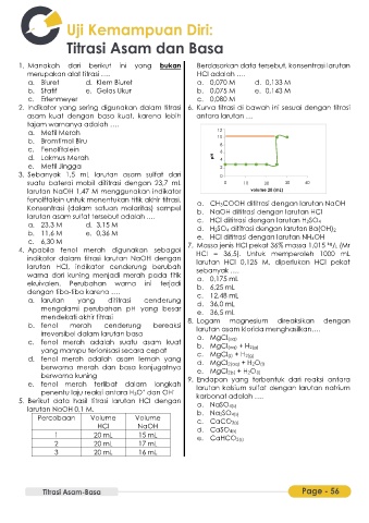 2. Indikator yang sering digunakan dalam titrasi 6. Kurva titrasi di bawah ini sesuai dengan titrasi